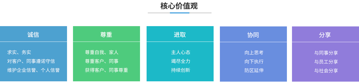 誠信:求實、務(wù)實,對客戶、同事遵諾守信,維護(hù)企業(yè)信譽(yù)、個人信譽(yù)